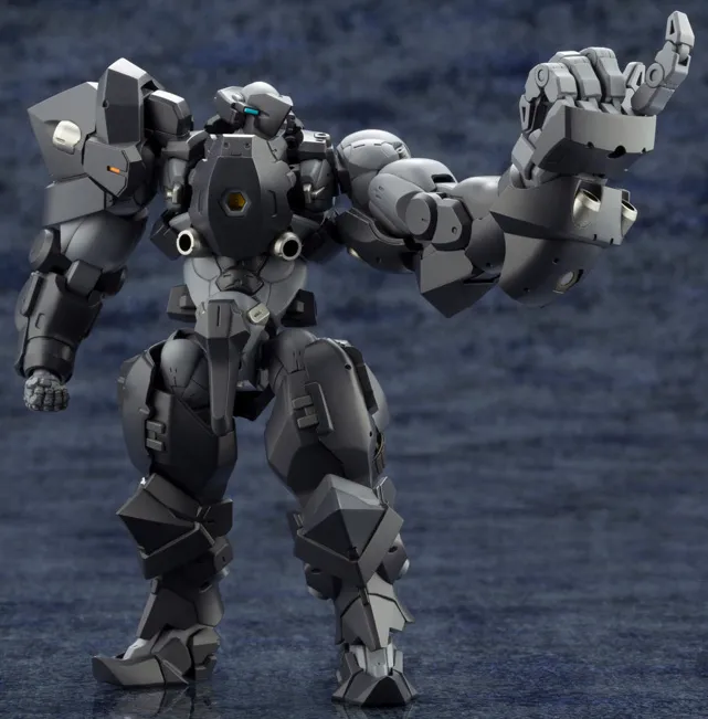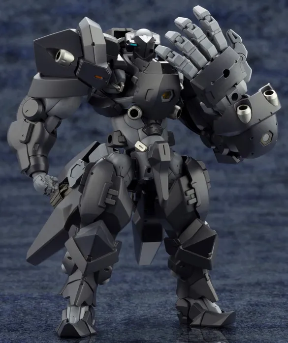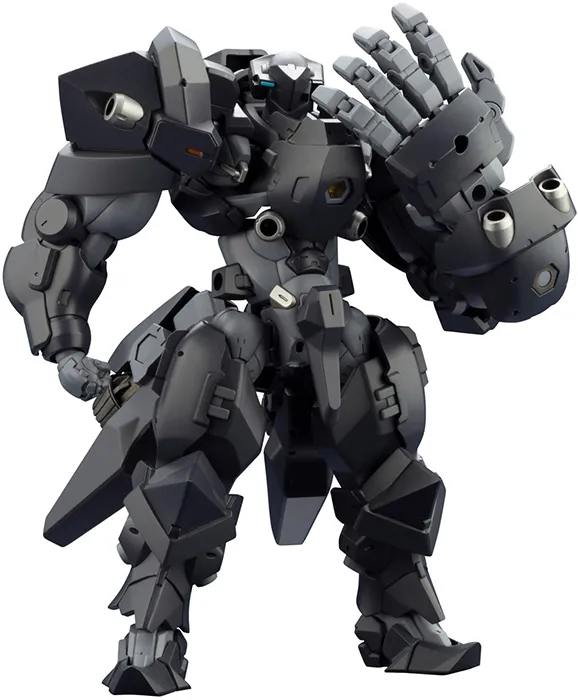 This model is just over 4 inches tall and is highly articulated allowing the figure to be displayed in a variety of poses. The large left hand, a distinguishing feature of the character design, has articulated fingers for creating more human-like poses. It has a 3mm connection point that allows it to hold weapons firmly when joined with the included attachment part. The gigantic manipulator can be assembled for either the left or right hand. The shoulder armor can also be swapped and attached to either side.