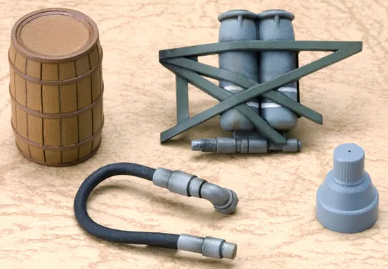 The transformation to tank mode and standing mode is reproduced by partially replacing it! In addition to being able to 'stand on its own' in standing mode, the display unique to the gun head is also decided, such as the reproduction of the vertical shaft movement mode that was impressive in the play. The aircraft number and other markings indicating the main character 'Gunhead 507' are reproduced with the attached decals. In addition to the 'fuel tank', a 'barrel containing vintage whiskey' can be attached to the legs as set, and you can also enjoy reproducing the last scene in the play by removing the upper '20mm chain gun' gimmick.