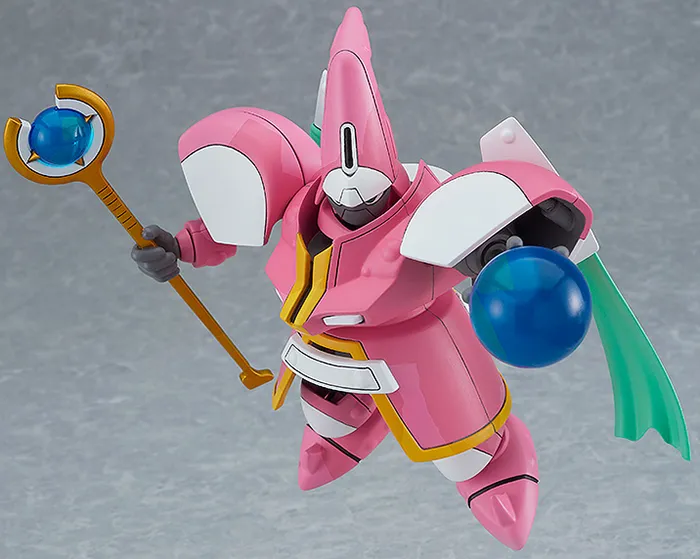 Zephyr comes with its sword and shield. The sword can also be stored inside their shield. Magidorar can be equipped with its rune staff and crystal ball, and two types of abdomen parts are included for creating both its TV appearance and OVA appearance.