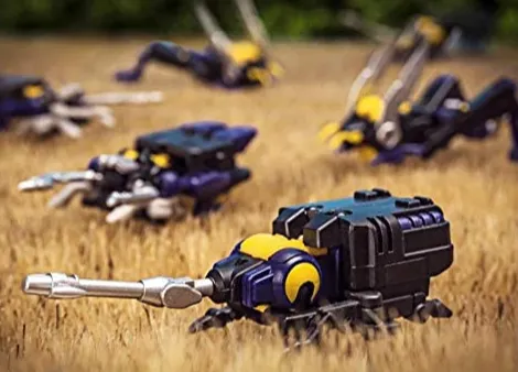 Sturdy plastic construction ensures that very few things will smash these insect 'bots, while the faithful golden yellow/purple mix color scheme gives them an authentic look you'll love. Each figure has its own gun and energy cubes included in the package.