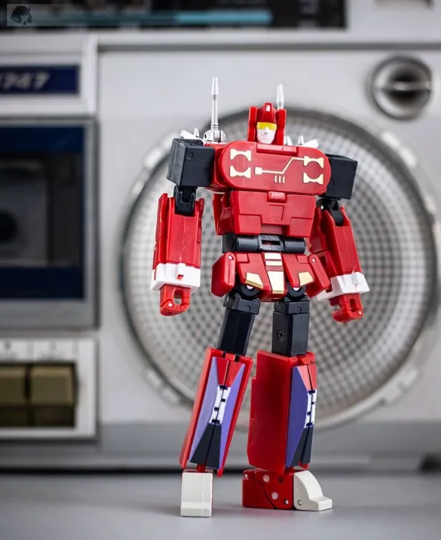 RMX-08 Enmitus stands at a mighty 5.3 tall, is scaled to masterpiece size, and transforms from Cassette Tape to robot and back. RMX-08 Enmitus transforms easily and every part of the figure features durable plastic construction and remarkably smooth articulation.