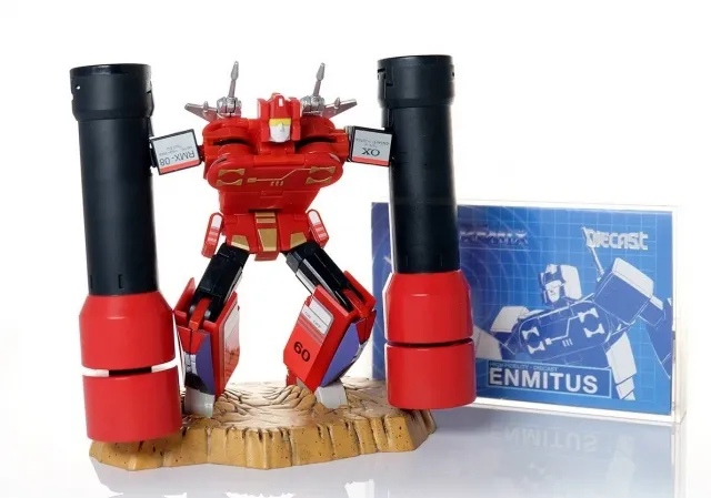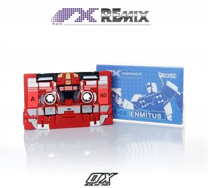 RMX-08 Enmitus is a Masterpiece Scale Scaled figure manufactured by Mastermind Creations and part of their Ocular Max sub-brand. RMX-08 Enmitus is part of the Remix toyline, he stands 5.3-inches tall and transforms from a robot to Cassette Tape and back.