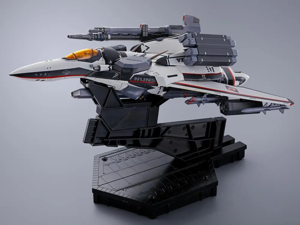 The VF-171EX Armored Nightmare Plus Ex (Alto Saotome Use) Revival version rejoins the DX CHOGOKIN series! Features livery as piloted by Saotome Alto in the second half of the series. The armor parts and the Valkyrie are painted in matte colors for a luxurious feel, and the armor features accurate markings.