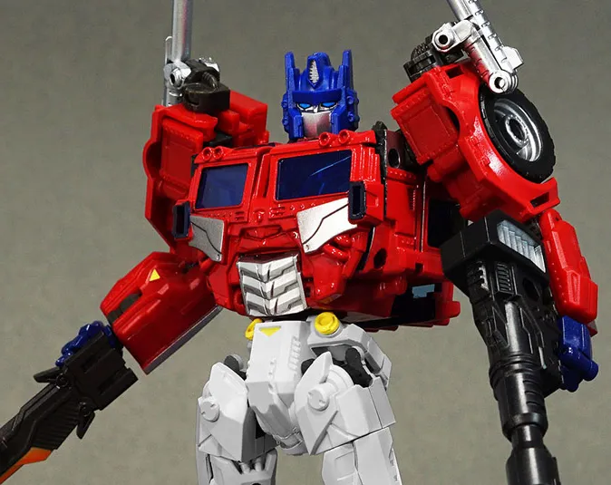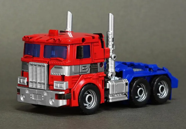 It transforms from robot mode to truck mode and features a battle axe, blaster rifle, and energy sword!