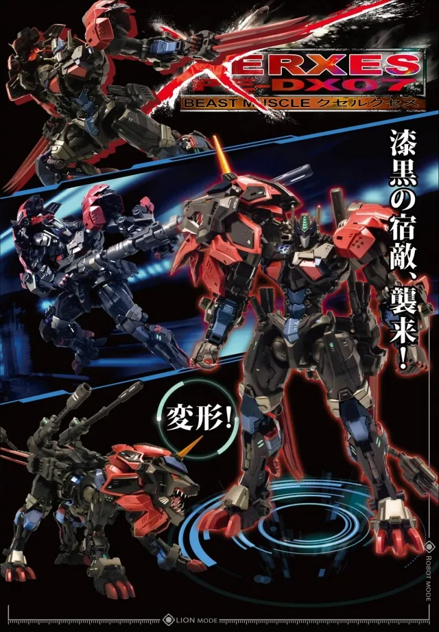 Xerxes is a recolor of Leonidas and has more than 60 points of articulation and stands 23CM/9" tall in robot mode and is made of PC-ABS and die-cast parts.