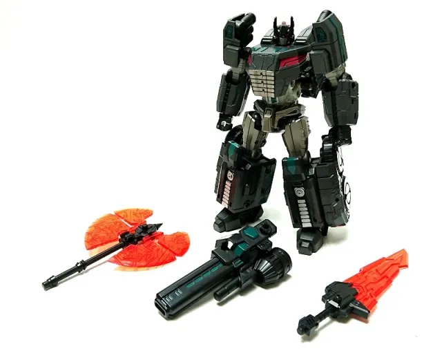 Planet X's PX-16 Charon is made of durable plastic and features a high level of articulation and is highly posable. The figure is built to a high standard and meticulously precision engineered to the Planet X's standards. PX-16 Charon is a Deluxe Class scale figure—standing 6.3-inches tall in his robot mode and can quickly transform between a Armored Truck and robot and back.