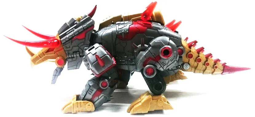 Planet X's PX-05 Quirinus is made of durable plastic and features a high level of articulation and is highly posable. The figure is built to a high standard and meticulously precision engineered to the Planet X's standards. PX-05 Quirinus is a Voyager Class scale figure—standing 7.0-inches tall in his robot mode and can quickly transform between a Triceratops and robot and back.
