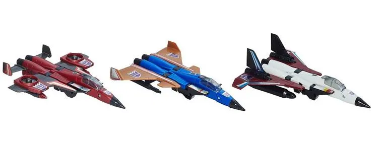 Included in this set are each figures Cluster Bombs, 2 fists (left & right), 2 wings (left & right), 2 tail fins (left & right), front landing gear plus a G1 Transformers reissue of: Dirge, Ramjet and Thrust.