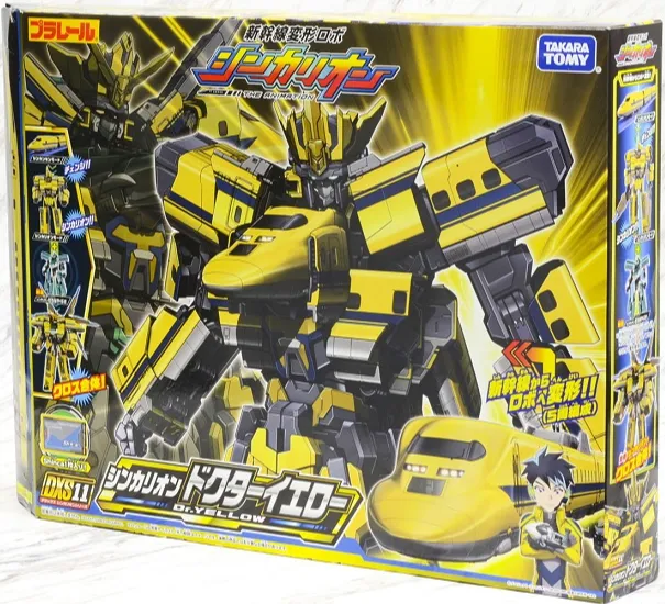 From the animated series Shinkansen Henkei Robo Shinkalion, this figure is composed of 5 separate train cars. The front and end train cars combine to create the robot mode for Doctor Yellow, while one middle car opens up to store his weapon and crown accessories.