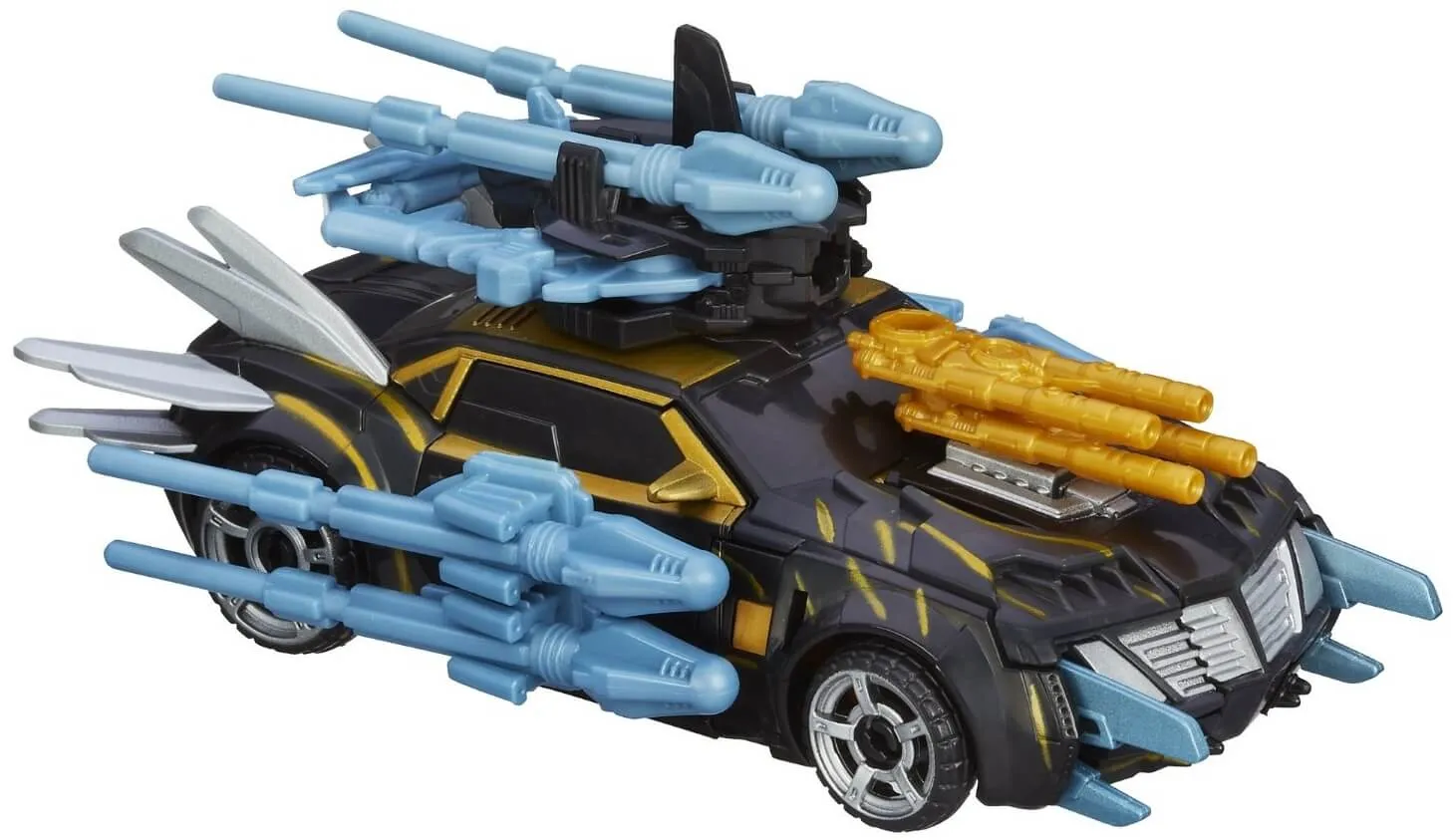 Deluxe Class Night Shadow Bumblebee is from the Deluxe Class Night Shadow Bumblebee toy series by Hasbro. Night Shadow Bumblebee stands 5.0-inches tall, is a Deluxe Class scaled figure and transforms from a Sports Car to robot and back.