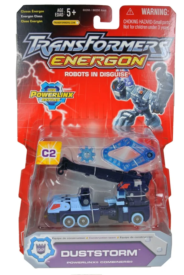 Transformers Energon Duststorm is a Basic Class scaled figure that stands 4-inches tall in robot mode and transforms from robot to Crane and back.