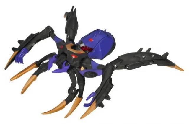 Transformers Animated Deluxe Class Blackarachnia is a Deluxe Class scaled figure that stands 5-inches tall in robot mode and transforms from robot to Spider and back.
