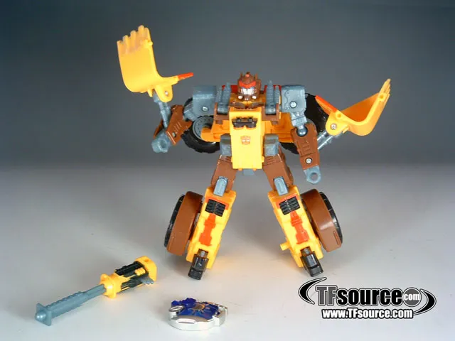 Transformers Cybertron GC-09 Guardshell Landmine is a Deluxe Class scaled figure that stands 5.5-inches tall in robot mode and transforms from robot to Front Loader and back.