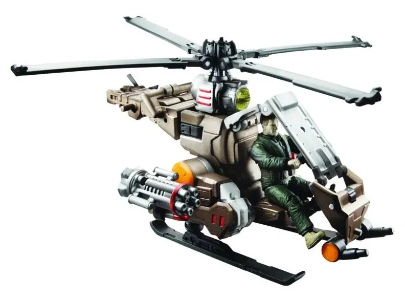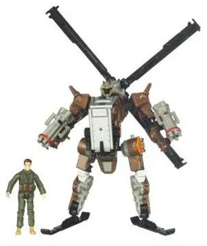 Part of the second wave of Basic-class Dark of the Moon MechTech Human Alliance Triple Changer figures, Whirl transforms from a robot with a big gut and ski-feet into a one-man attack helicopter with the (clear plastic) canopy painted over.