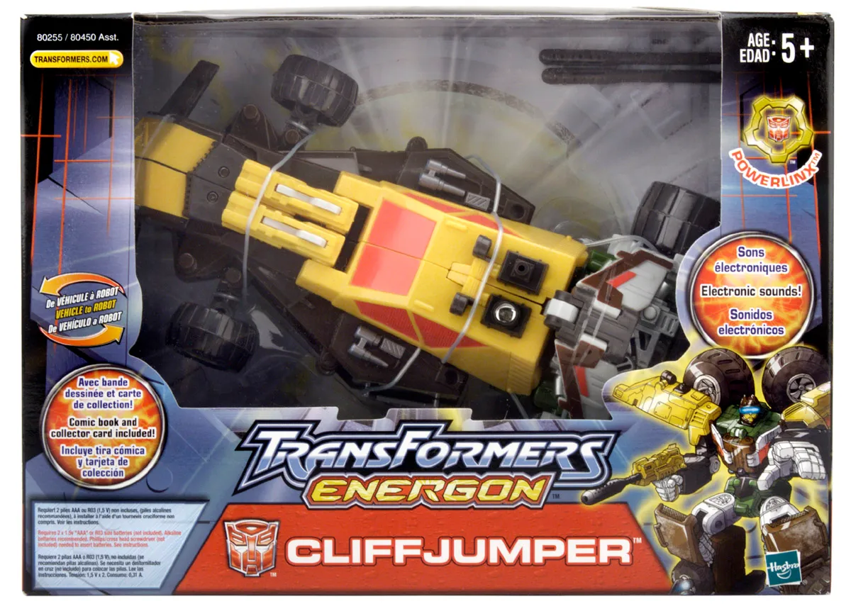 Transformers Energon Cliffjumper is a Mega Class scaled figure that stands 7-inches tall in robot mode and transforms from robot to Dune Buggy and back.