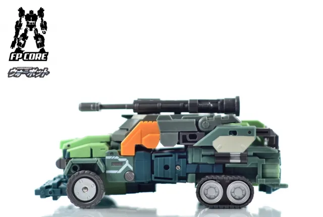 Recoiler by Fansproject stands approximately 7-inches tall in robot mode and is part of Fansproject's Warbot Series of figures. Each figure features a transforming core that also functions as a driver when the main robot is in vehicle mode. Each figure is approximately Voyager scale and features a core or transformable robot that forms the chest or core part of each robot. These individual robots transform from robot to core and back and are interchangable with other Fansproject core robots.