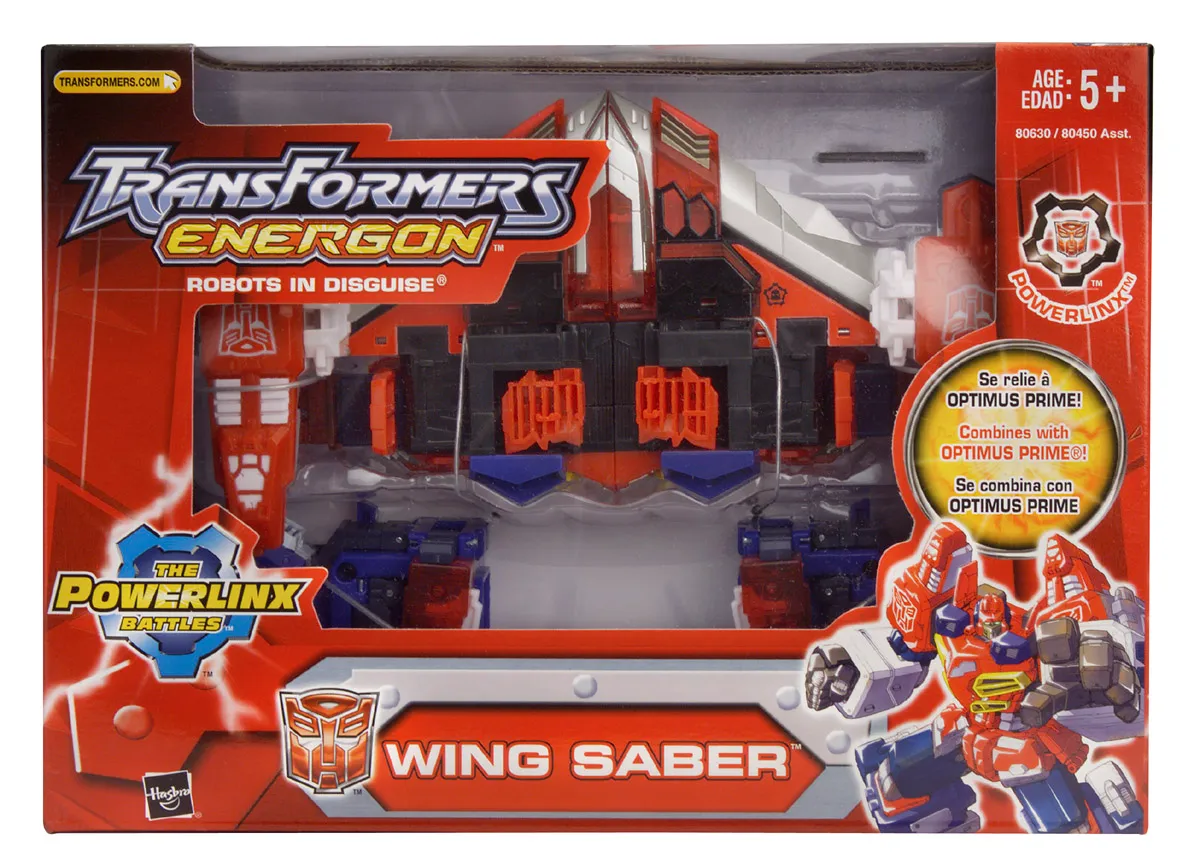 Transformers Energon Wing Saber is a Mega Class scaled figure that stands 10-inches tall in robot mode and transforms from robot to Jet and back.