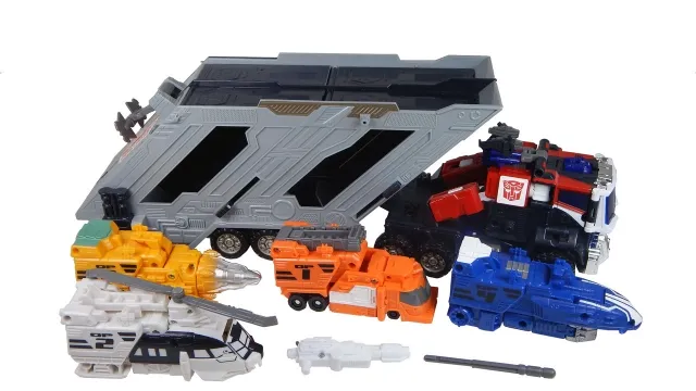 Super class Superlink Convoy transforms into a Cybertronic short-nosed truck cab.