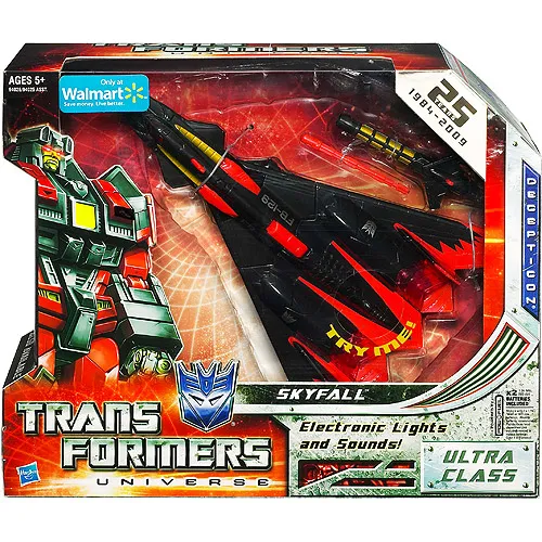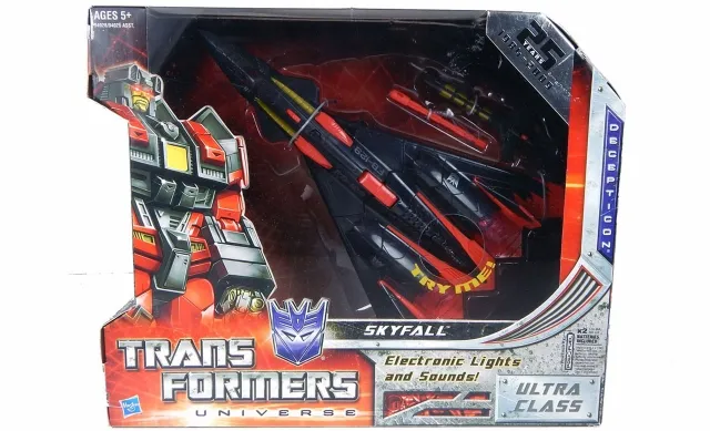 Transformers Universe Skyfall transforms from a Plane to robot and back, is a Ultra Class-scaled figure and stands approximately 8.0-inches tall in robot mode.