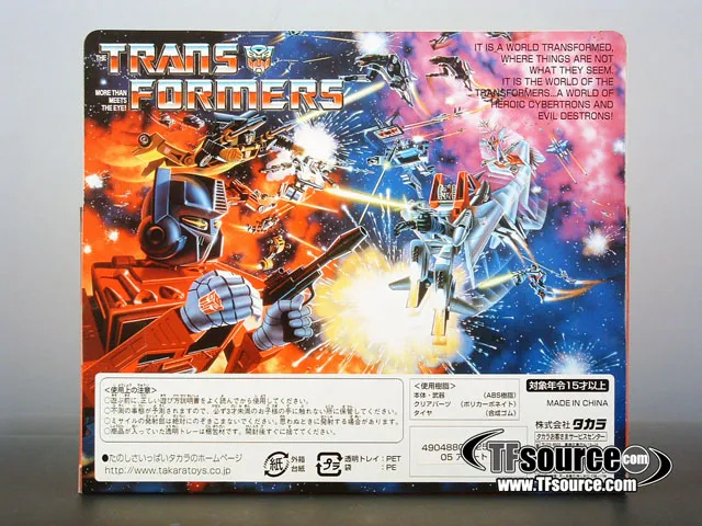 The Transformers Generation One Collectors Edition Toyline by Takara was released exclusively in Japan and features reissues of original Generation 1 toys. Featuring both G1 Autobots and Decepticons this series was released in the early 2000's and includes primarily main Transformers G1 characters originally released in 1984-1986. Each figure comes in Japanese style packaging including a box window displaying the figure in vehicle mode similar to how original Japanese and US Transformers figures were released in the 80's. Additionally each figure includes a collector's card that features G1 toy artwork and the original product numbering of each figure in Japan.