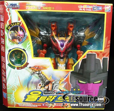 Transformers Cybertron GD-07 Flame Convoy Korean Version is a Ultra Class scaled figure that stands 9-inches tall in robot mode and transforms from robot to Dragon and back.