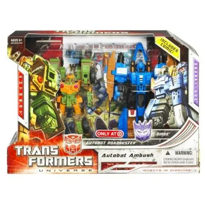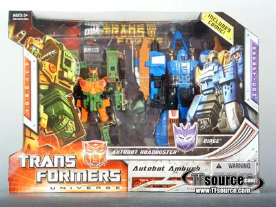 Transformers Universe Roadbuster vs. Dirge Autobot Ambush Set of 2 transforms from a Plane to robot and back, is a Voyager Class-scaled figure and stands approximately 7-inches tall in robot mode.