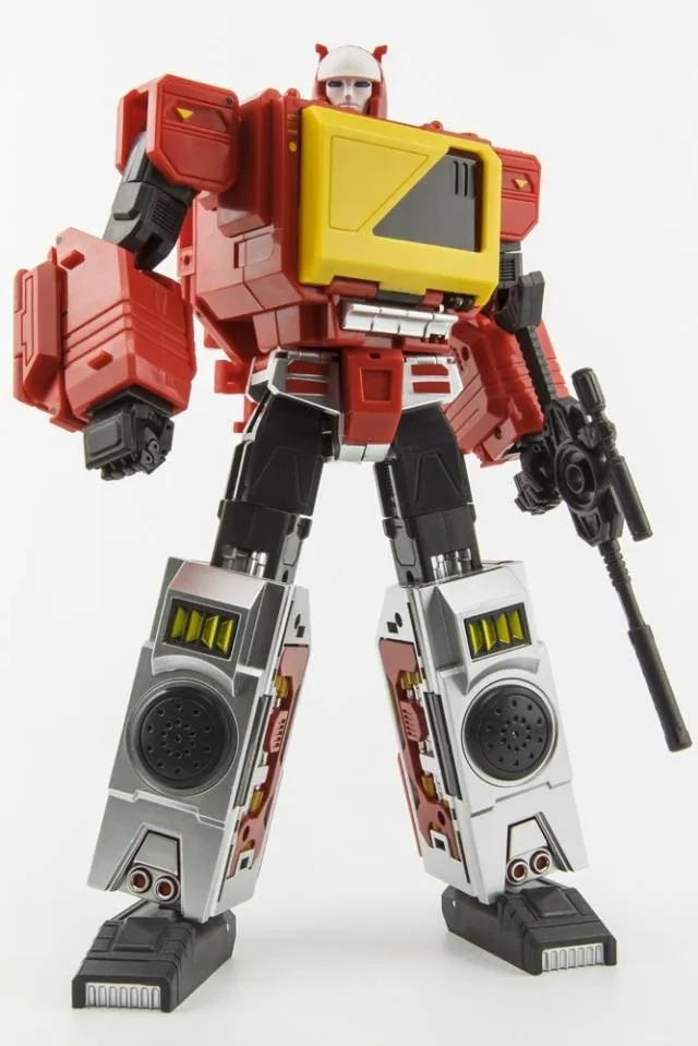 Transistor Pure Red Version and HiFi by KFC Toys is a Masterpiece Scale scaled 3rd party figure that transforms from a Cassette Player to robot and back. Transistor Pure Red Version and HiFi figure stands 9.4 inches tall in robot mode and scales to other figures from KFC Toys and to other Masterpiece Scale scaled figures already in your collection.