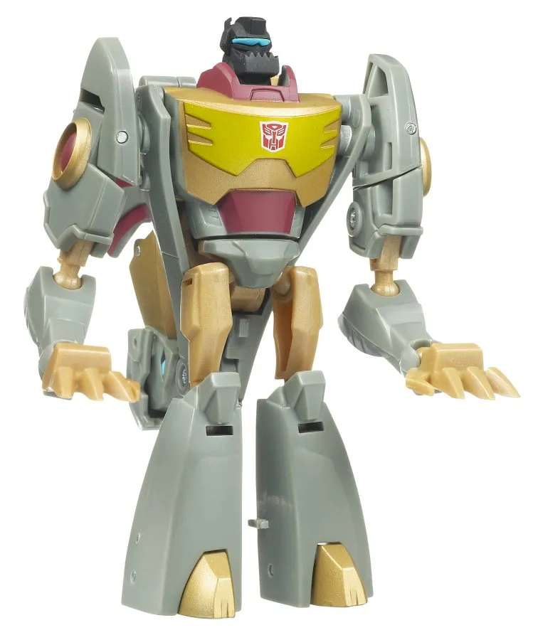 Transformers Animated Activators Grimlock is a Activators scaled figure that stands 4-inches tall in robot mode and transforms from robot to Tyrannosaurus Rex and back.