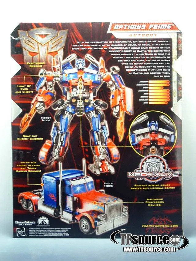 Transformers Revenge of the Fallen Leader Class Optimus Prime Black Version back of packaging!