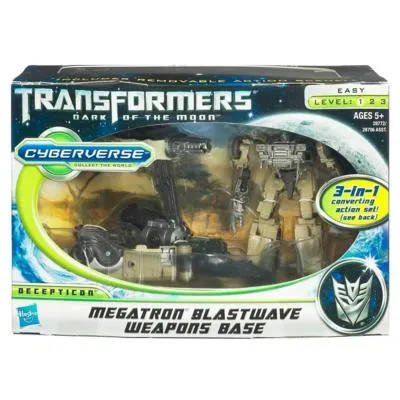 Megatron with Blaswave Weapons Base jumps straight out of the Transformers the Movie live action film and into your collection! Megatron with Blaswave Weapons Base is Cyberverse Commander scaled, stands 5-inches tall and transforms from Semi Truck And Trailer to robot and back.