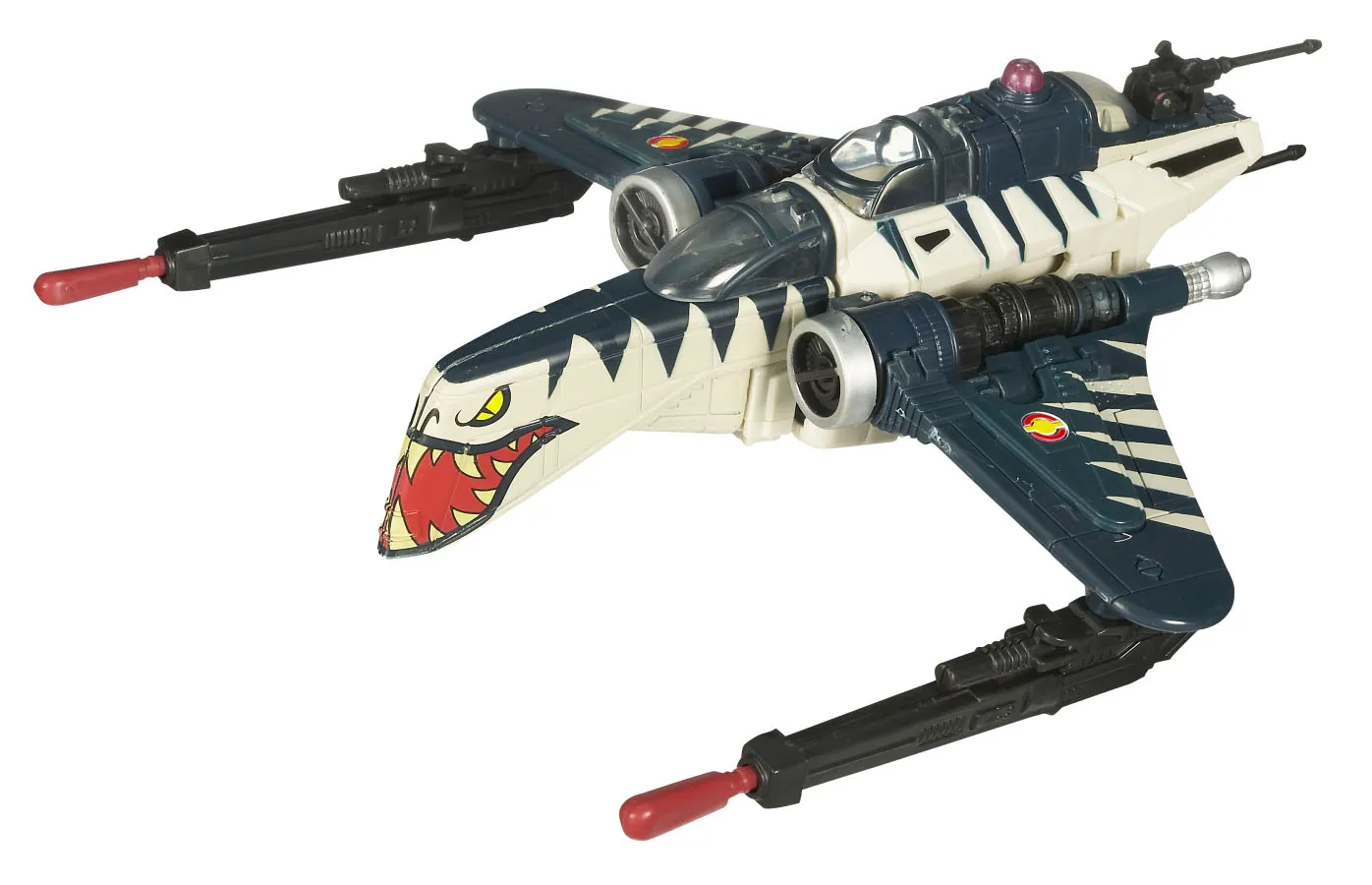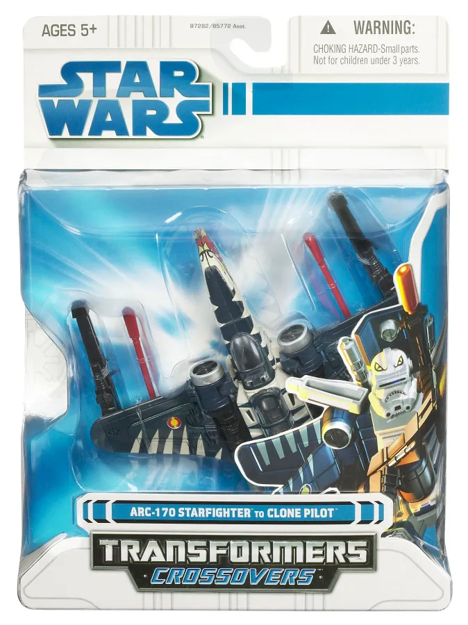 The first transforming clone pilot toy turns from a ARC-170 Starfighter into a battle robot with wings sticking off its body here and there