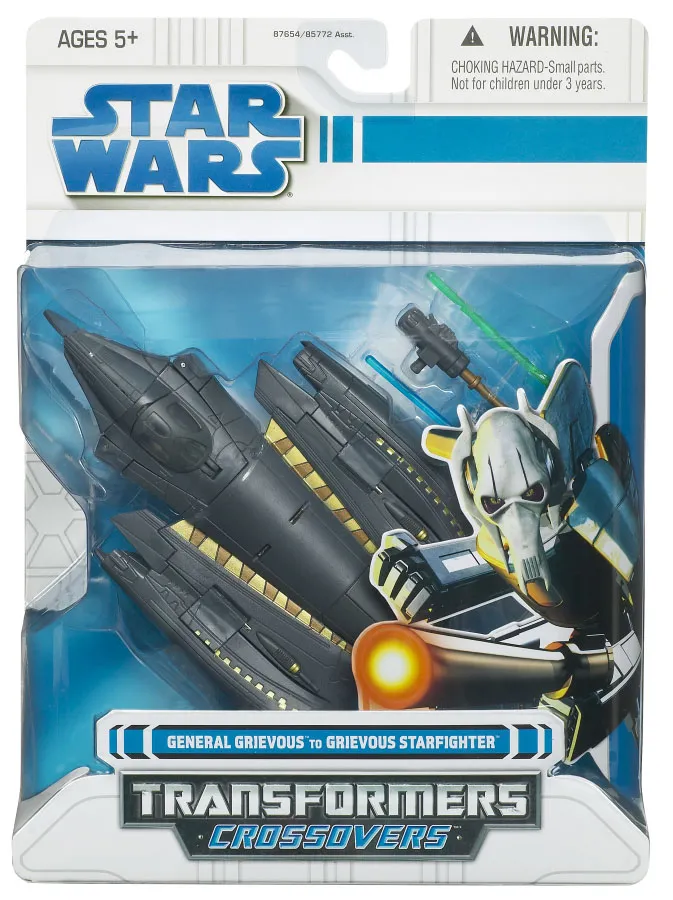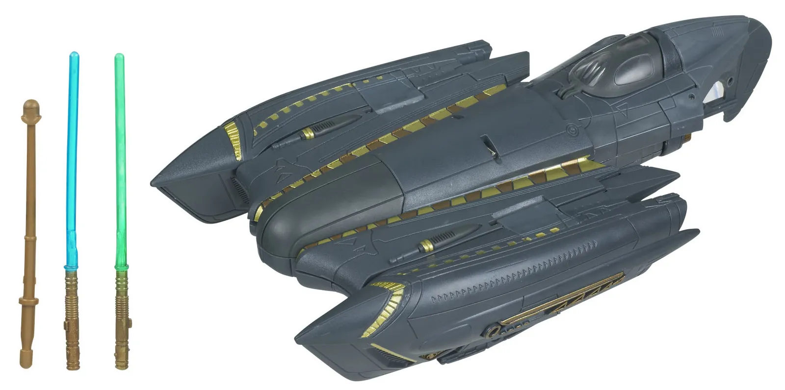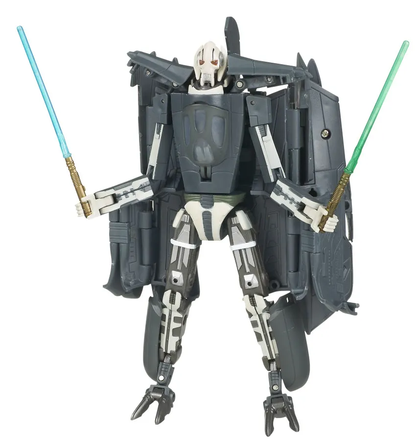 Grievous transforms into a Starfighter, equipped with two lightsabers and launching missile.