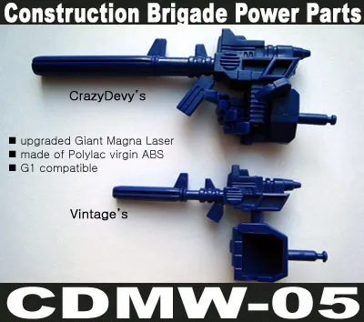 This popular set from Crazy Devy includes everything you need to soup up your G1 Devastator! Included is a more accurate G1 set of hands, that attaches to your Devastator as well as a large scaled version of his G1 rifle. This is a custom piece from 3rd party maker Crazy Devy, it is not an official Hasbro or Takara/Tomy piece. However the look, feel and quality is very high, and really brings new life to a G1 Devastator.
