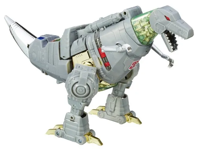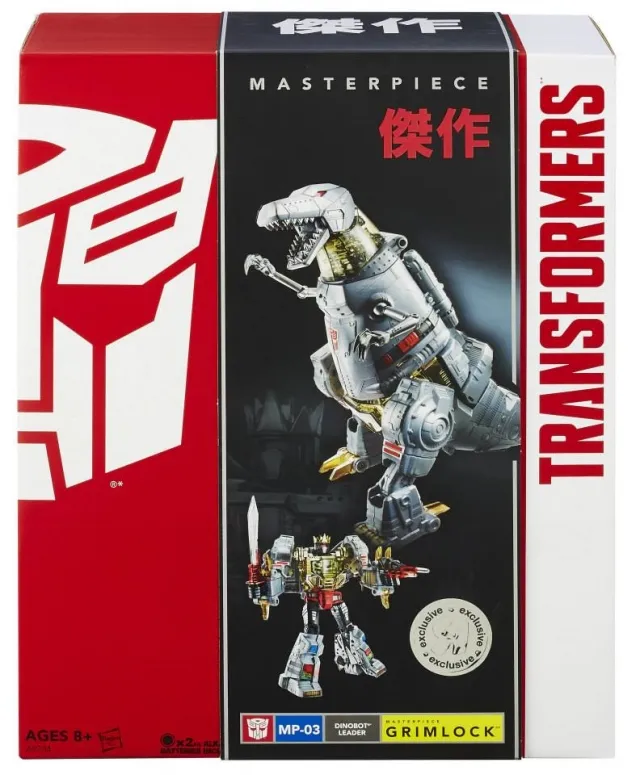 From Takara Tomy Transformers Masterpiece MP-03 Grimlock stands an impressive 9.0-inches tall in robot mode. Not only is this figure incredibly detailed, but it comes packed with an extinsive array of accessories. MP-03 Grimlock is highly articulated and transforms from a Tyrannosaurus Rex to robot and back and as a Masterpiece scaled figure scales with other MP scaled figures in the Transformers Masterpiece toyline. Masterpiece Transformers offer an extreme high attention to detail and jump straight out of the Transformers movies and TV series and into your collection.
