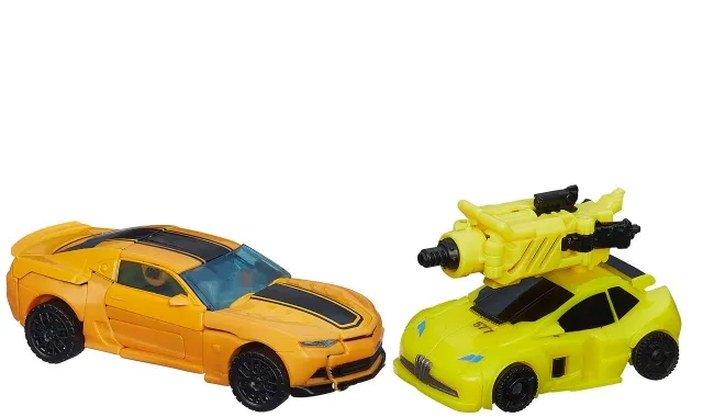 Bumblebee meets Bumblebee in this awesome 2-pack! You can see the evolution of your favorite Autobot from then to now in these 2 Bumblebee figures. Both your classic and your Age of Extinction Bumblebee figures convert from robot mode to sports car mode and back! Can the Decepticons handle not one, but 2 fighting Bumblebees? Its up to you!
