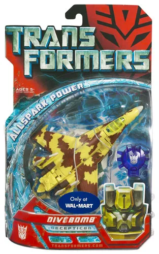 Deluxe Class Divebomb Exclusive jumps straight out of the Transformers the Movie live action film and into your collection! Divebomb Exclusive stands 5.0-inches tall in robot mode and transforms from Plane to robot and back.