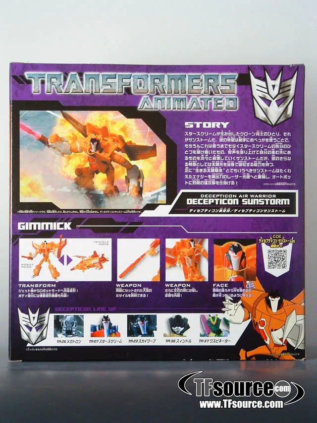 Dive into the world of Transformers Animated with TA35 Decepticon Sunstorm, an officially inspired figure capturing its dynamic design and character flair. Featuring bold animation-style aesthetics and premium articulation, featuring a premium painted look only available to Japanese Transformers Animated figures.