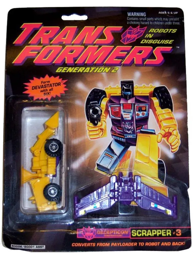 A great condition G2 Scrapper! Backer card has been cut to remove the toy, and stickers were applied. Includes everything that originally came with this toy, a great display piece overall!