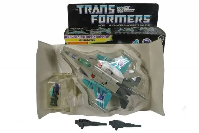 Dreadwind transforms into a General Dynamics F-16 Fighting Falcon jet. Figure has been opened, box is intact. Bubble for mini figure has come of backing. Both figures are in excellent condition with tight joints and no signs of wear.