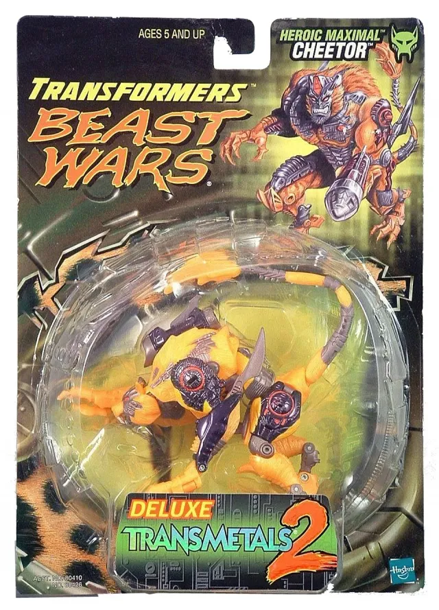 Transformers Beast Wars Cheetor is a Deluxe Class scaled figure that stands 6-inches tall in robot mode and transforms from robot to Cheetah and back.
