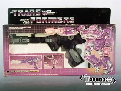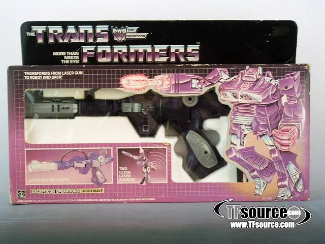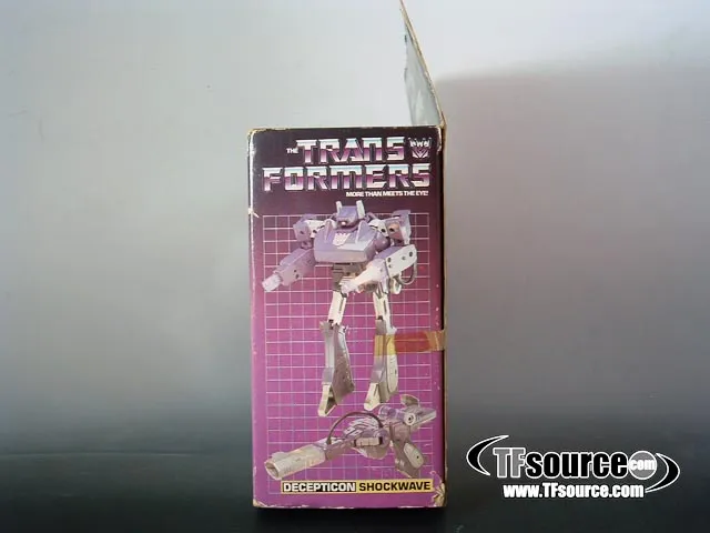 Shockwave, the infamous ray gun and Decepticon Operations famous from the classic Transformers television show comes MISB, and factory sealed with tape on each end. Although the box shows considerable wear, a minty fresh G1 Shockwave is inside, still factory sealed after more than 20 years! A great piece of Transformers history. Box wear is as shown, a C6-C7 box.