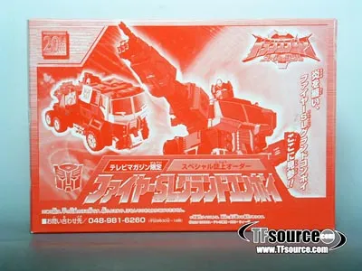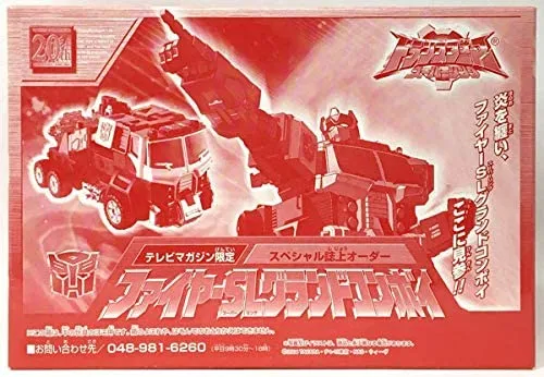 Fire SL Grand Convoy was a TV Magazine exclusive mail away figure, limited to 3000 pieces worldwide! It features an exclusive color scheme and packaging to this piece, and is a recoor of SC-13 Grand Convoy.