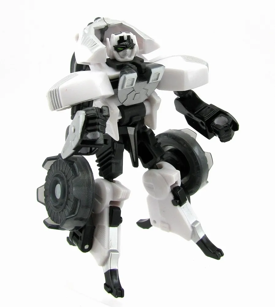 Transformers Cybertron Gasket Police Type Store Exclusive is a Mini-con scaled figure that stands 1-inches tall in robot mode and transforms from robot to Police Motorcycle and back.