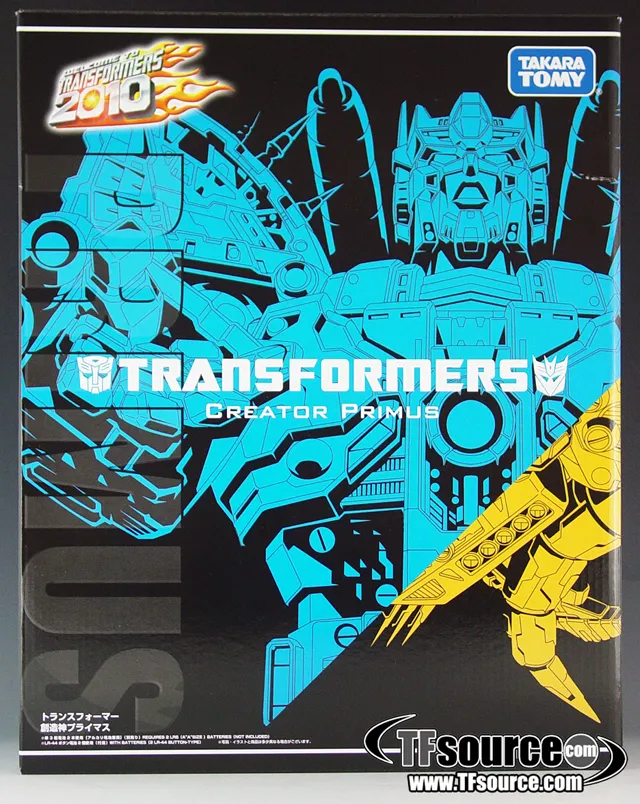 Primus is the creator god of the Transformers. He is as old as the universe itself, and is in strong opposition to Unicron, the destroyer of the universe. Now you can own this great Takara Tomy 2010 remake of the Primus figure. This new remake looks to have a more metallic look to it with a color scheme unique to this piece.