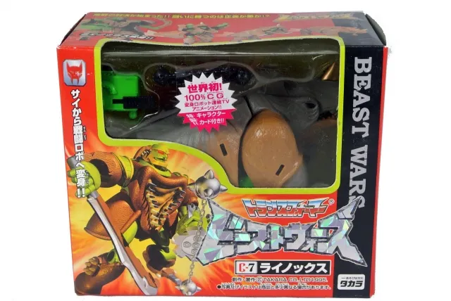 Transformers Beast Wars C-7 Rhinox is a Deluxe Class scaled figure that stands 5.5-inches tall in robot mode and transforms from robot to Rhinoceros and back.