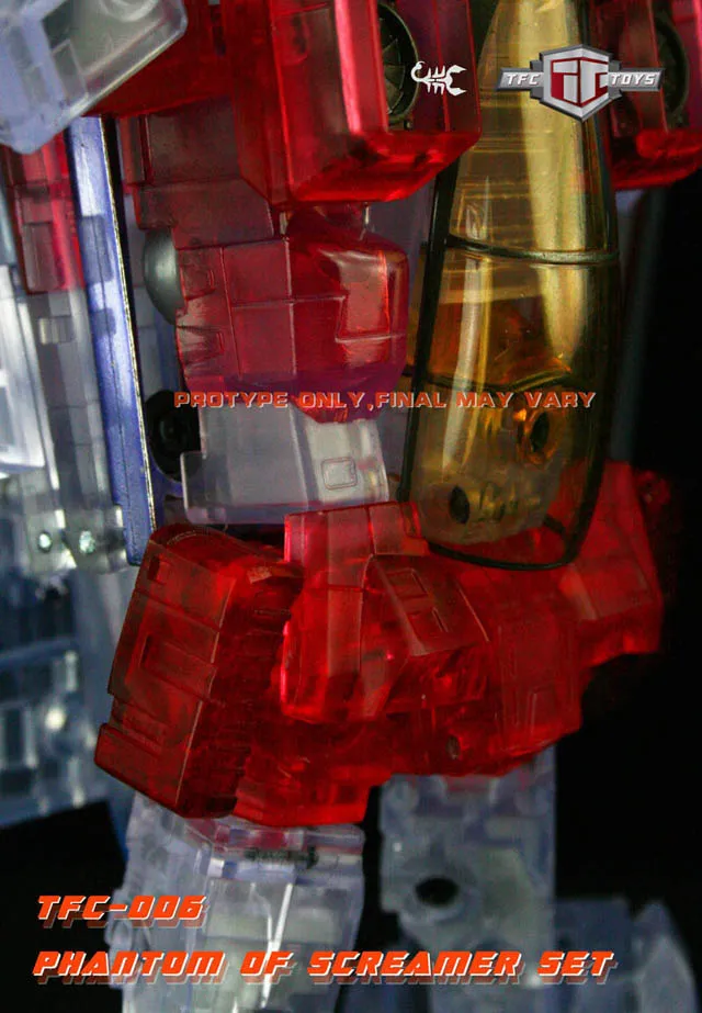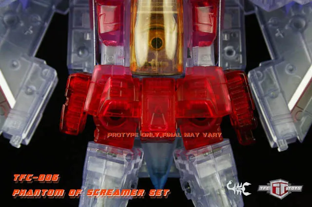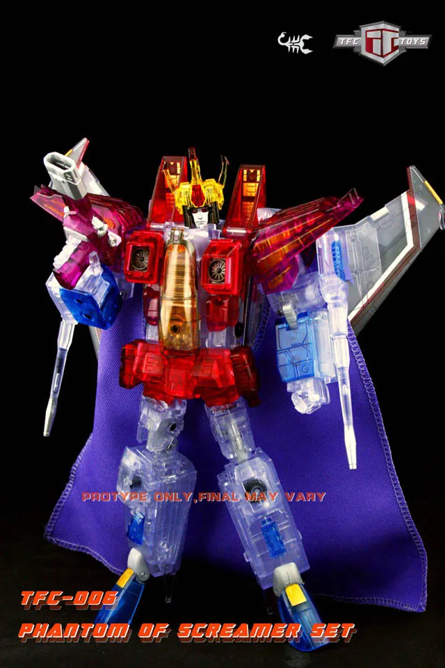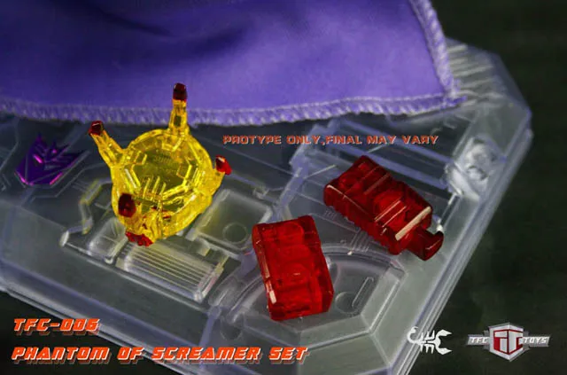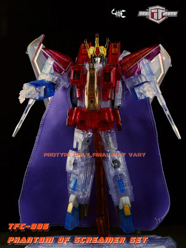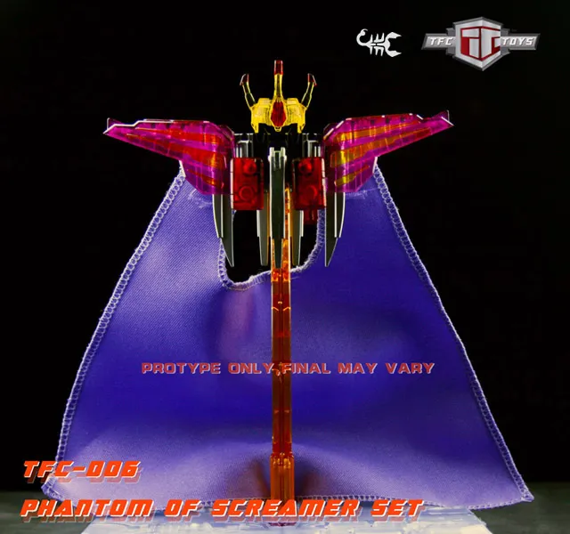 TFC Toys once again brings a great add-on kit to spruce up your MP-03G Masterpiece Ghost Starscream! Included in the B kit, is clear version Crown, Shoulder Armor, and Waist armor for your MP-03G, as well as a cape, and finally the full set of accessories from the A & B set can be used on one MP Starscream for a fully armored Starscream. Spice up your MP-03G Masterpiece Ghost Starscream today with this impressive selection of add-ons!