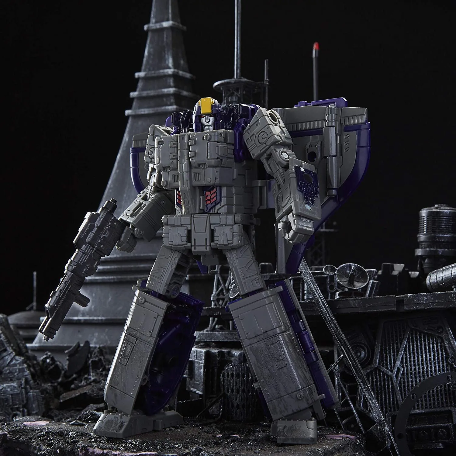 Transformers WFC Siege Leader Astrotrain in his train alt mode with blaster accessories!
