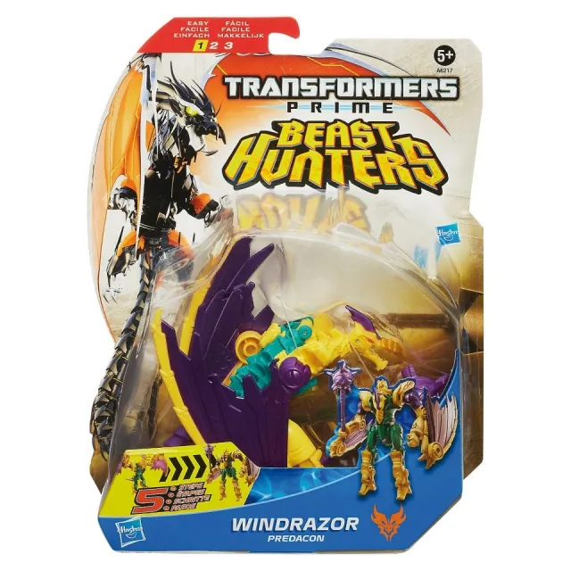 Deluxe Class Windrazor is from the Deluxe Class Windrazor toy series by Hasbro. Windrazor stands 5.0-inches tall, is a Deluxe Class scaled figure and transforms from a Bird to robot and back.