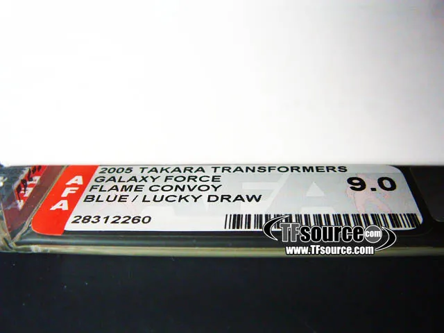 Lucky Draw Blue Flame Convoy, which is often referred to as the Sky Lynx version was won via the Transformers TV Magazine which featured a chance to win this Lucky Draw Blue Flame Convoy. This piece was just 1 of 50 and has been authenticated by the AFA. It has been graded a 9.0 out of 10.0 under the new AFA Modern Grading scale that is applied for any toys made from 1995 to present. An AFA 9.0 is equivalent a pre-modern grade of an AFA 90, or a Near Mint + to Mint Grade.