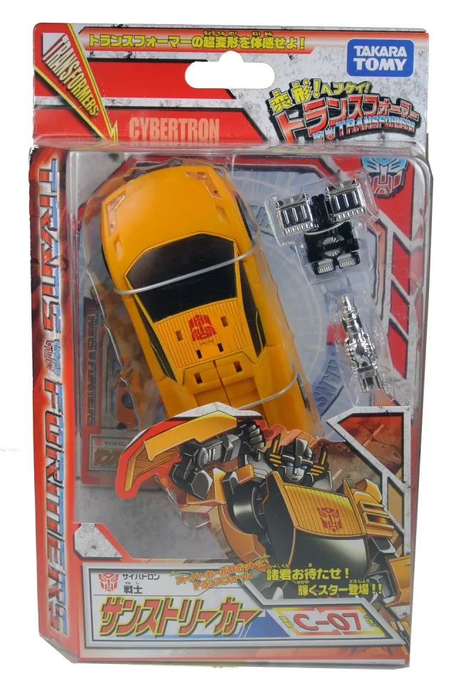 C-07 Sunstreaker is part of Takara Tomy's Henkei Classics line which was available exclusively in Japan. C-07 Sunstreaker is Deluxe Class-scaled, stands approximately 6-inches tall in robot mode and transforms from a Sports Car to robot and back.